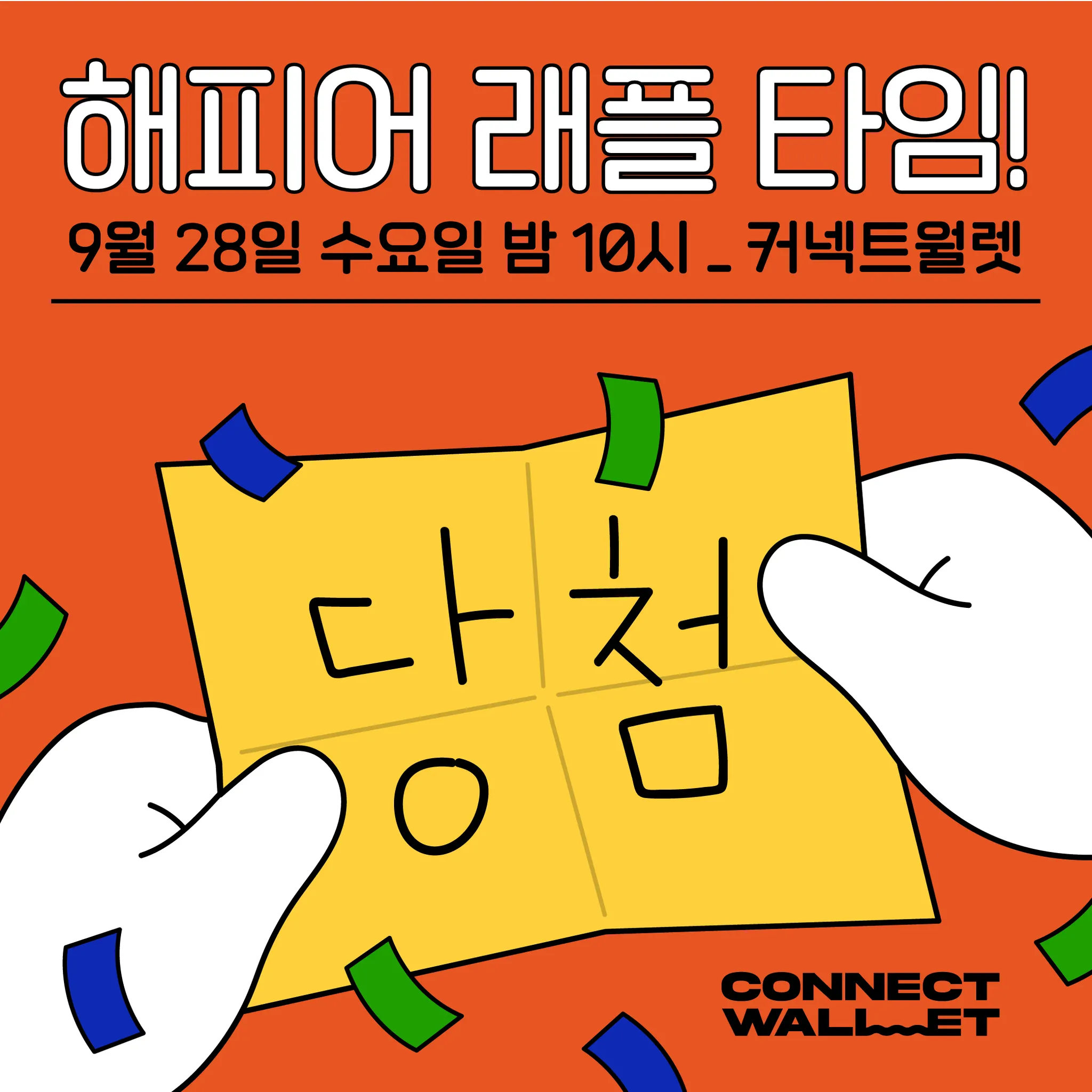9월 28일 수요일 밤 10시 커넥트월렛에서 신나는 <해피어 래플 타임>을 진행합니다.