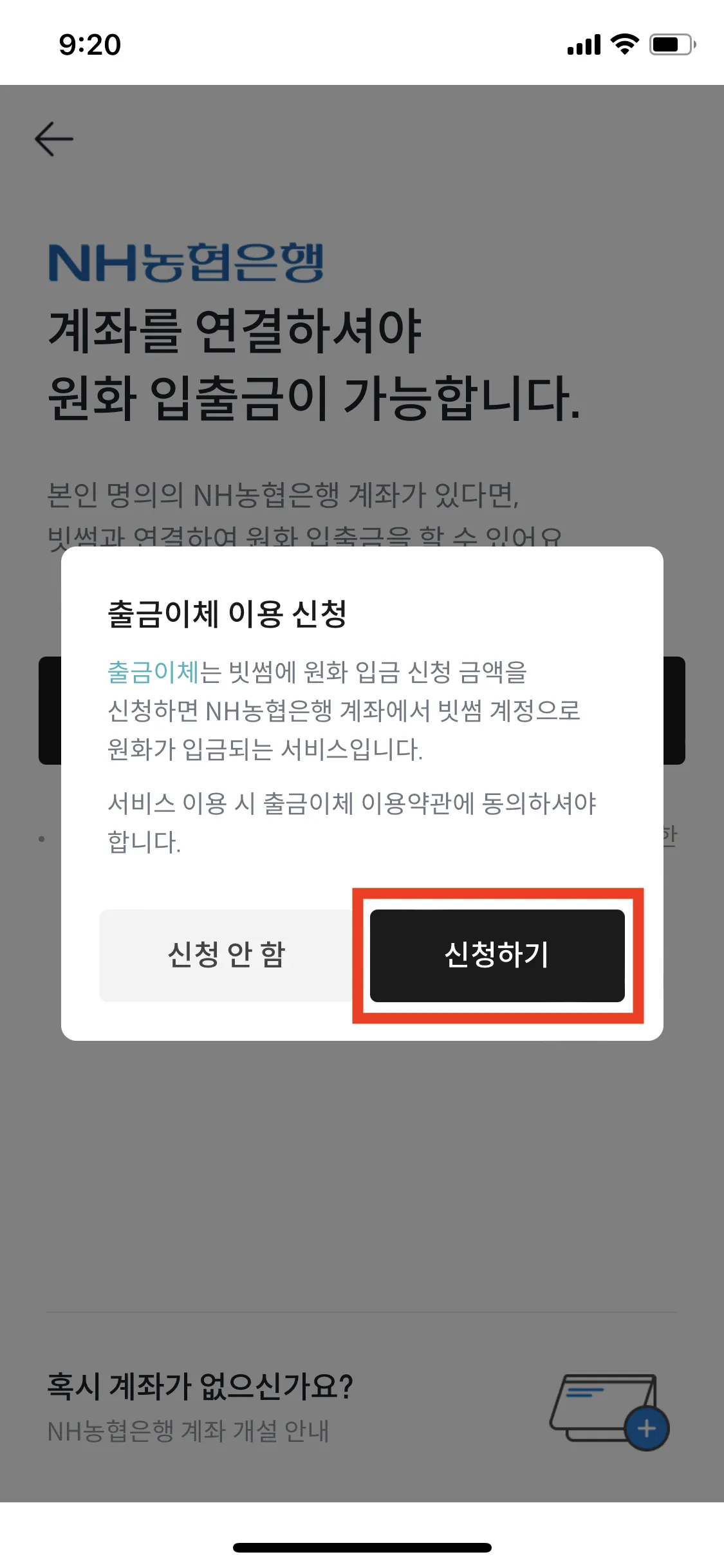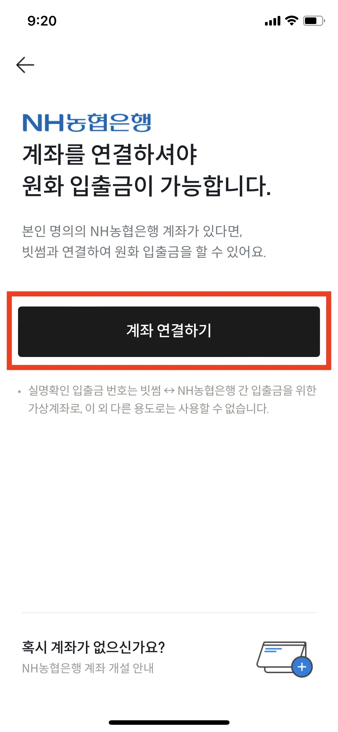 NH농협 계좌가 없다면 계좌 개설 먼저 진행해 주세요.