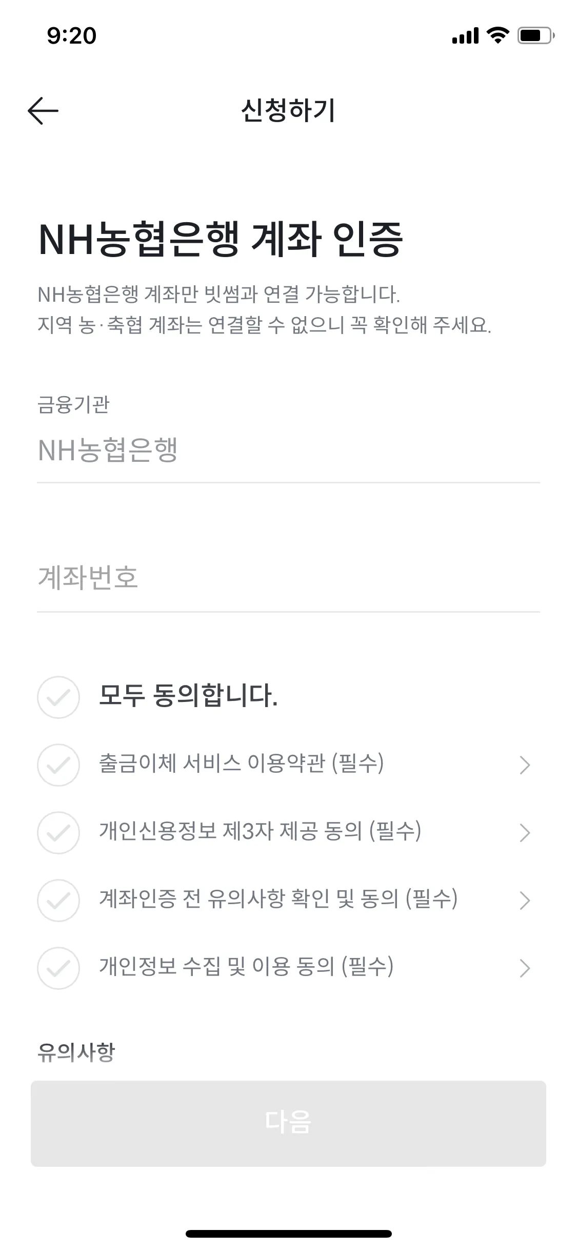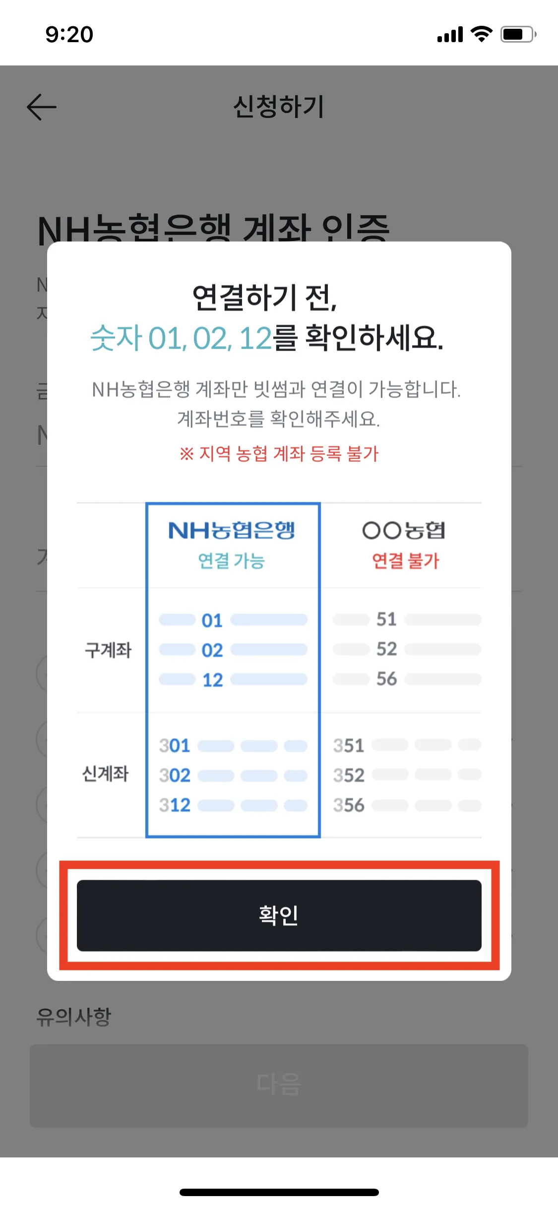 농축협 혹은 지역 농협 계좌 등록 불가 (오직 NH농협 계좌만 등록 가능)