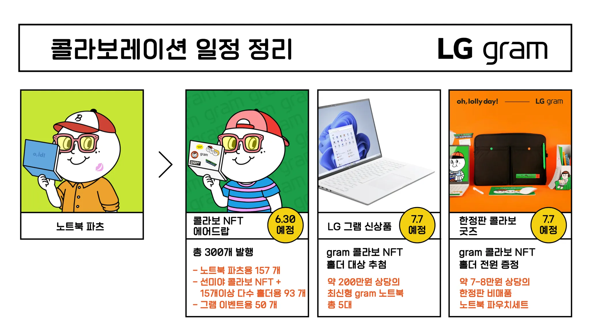 2. 콜라보 NFT 보유자 중 추첨을 통해 5명에게 약 200만 원 대의 <LG gram 최신형 노트북> 선물