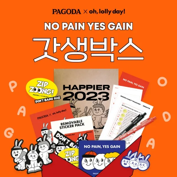 파고다는 오롤리데이(oh, lolly day)와 콜라보하여, 파고다 딜리버리 갓생박스를 제작했다. 갓생박스에는 △Good habit tracker 위클리 △No pain, yes gain 2023 다이어리 △마우스패드 △Study with me 펜 △리무버블 스티커팩 등 수강생들의 계획적인 시간 관리 및 학습에 도움을 주는 상품들로 구성했다.